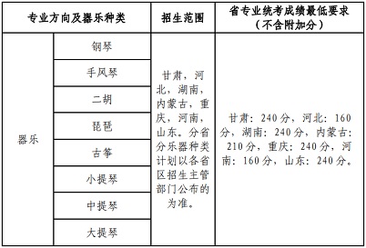 專業(yè)考試器樂種類須與我校招生專業(yè)對應(yīng)的器樂種類完全匹配,否則不予錄取。無影響器樂演奏的生理缺陷?忌陨砩硇慕】禒顩r不影響專業(yè)表演、演奏和學(xué)習(xí),符合《普通高等學(xué)校招生體檢工作指導(dǎo)意見》及有關(guān)補(bǔ)充規(guī)定要求。