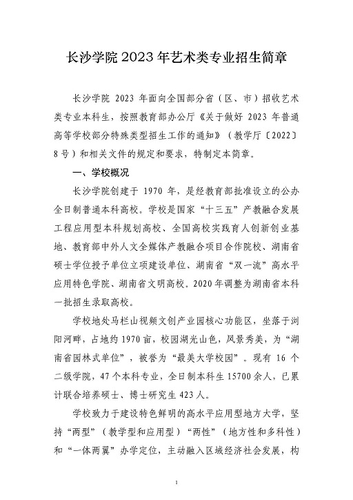 長沙學(xué)院2023年藝術(shù)類專業(yè)招生簡章
