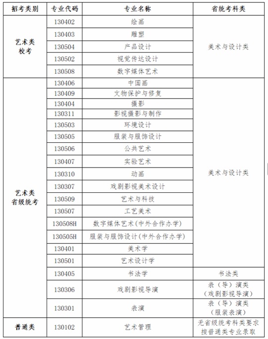 按教育部相關要求,報考我校藝術類專業的考生須按我校各專業與省級統考科類對應要求參加相應省級統考,我校2026年各專業招考類別和省級統考科類對應要求如下: