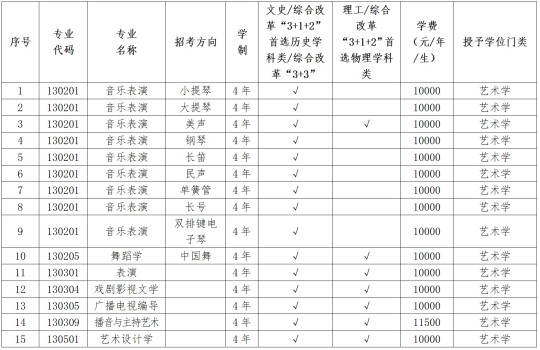 (1)在普通類專業批次招生的藝術類專業