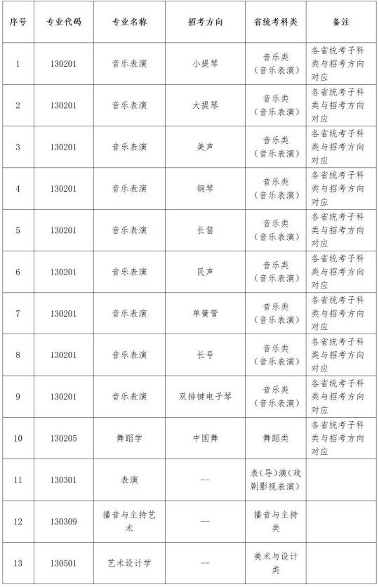 (2)在藝術類批次招生的藝術類專業