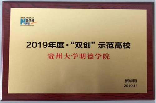 | 貴州大學明德學院榮獲新華網“2019年度·‘雙創’示范高校” |