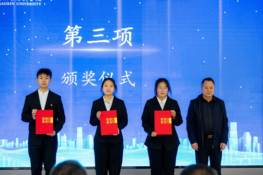 特別是在2025年陜西省賽中,學校推送的11項作品有10項獲獎,獲獎率高達91%,在全省同類型院校中排名第2位,并首次斬獲“優(yōu)秀組織單位”與“進步顯著獎”。更在第十九屆“挑戰(zhàn)杯”國賽中榮獲主體賽國家三等獎,位居同類型院校之首,實現(xiàn)了歷史性突破。這些成績的取得,源于學校將“挑戰(zhàn)杯”作為引領青年科技創(chuàng)新的重要抓手。通過深化“一院一賽”制度、舉辦“追光計劃”“攀登計劃”分享會百余場,并依托社會實踐與“揭榜掛帥”機制,有效推動了競賽成果從“教室”走向“市場”、從“賽場”走向“職場”,形成了“產學研用”深度融合的良性循環(huán),為新質生產力賦能高質量發(fā)展奠定了堅實基礎。頒獎儀式上,校領導為獲獎團隊、個人及相關單位鄭重頒發(fā)榮譽證書。燈光下,證書的金邊與獲獎者眼中的光芒交相輝映,這不僅是對過往努力的肯定,更是對未來科創(chuàng)征程的期許。