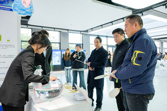 活動最后,學院領導一行走進六個學生科技作品展區(qū),與各項目團隊面對面交流,深入了解學生在人工智能、節(jié)能環(huán)保、文化創(chuàng)意等領域的創(chuàng)新實踐。領導們認真聽取講解,細致詢問作品的設計理念、技術路徑與應用前景,并就項目可行性及后續(xù)發(fā)展提出寶貴建議。學生們扎實的專業(yè)功底、清晰的表達與敢于突破的精神,獲得了充分肯定。