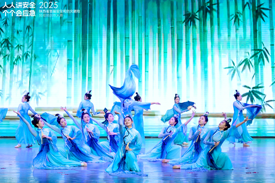 光影定格安全瞬間,鏡頭傳遞避險智慧。在優秀作品混剪展映后,頒獎環節有序進行。本次大賽共評選出優秀獎30部、三等獎10部、二等獎6部、一等獎3部,以及團體獎2項、單項獎12項。與會領導嘉賓分別為獲獎代表頒獎,期間該校舞蹈專業學生穿插表演的《敬畏·涇渭》《綠水映華》《同一個夢想》等節目為典禮增添亮點。