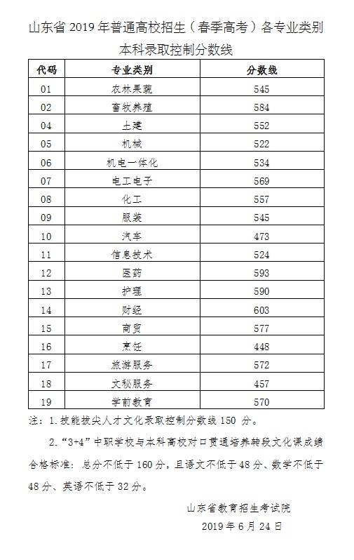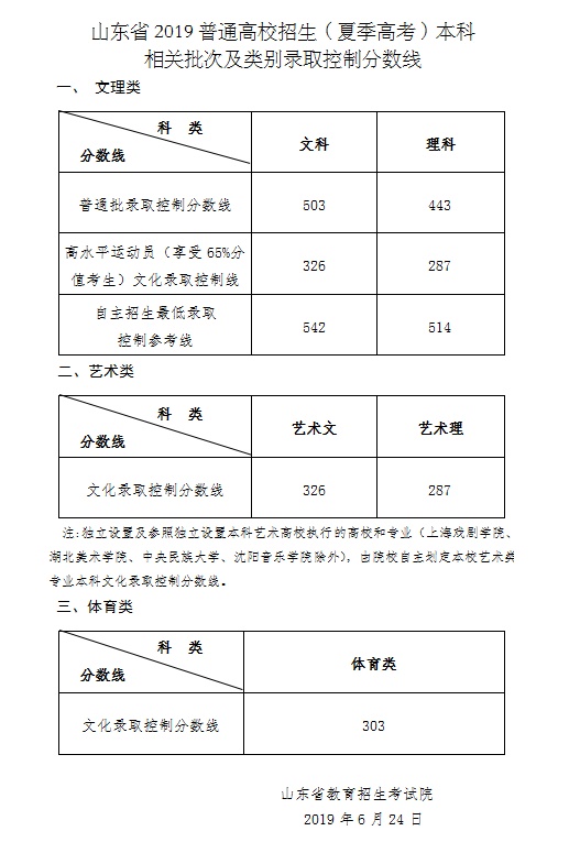 | 山東省2019年高考錄取控制分數線出爐!文科503理科443 |