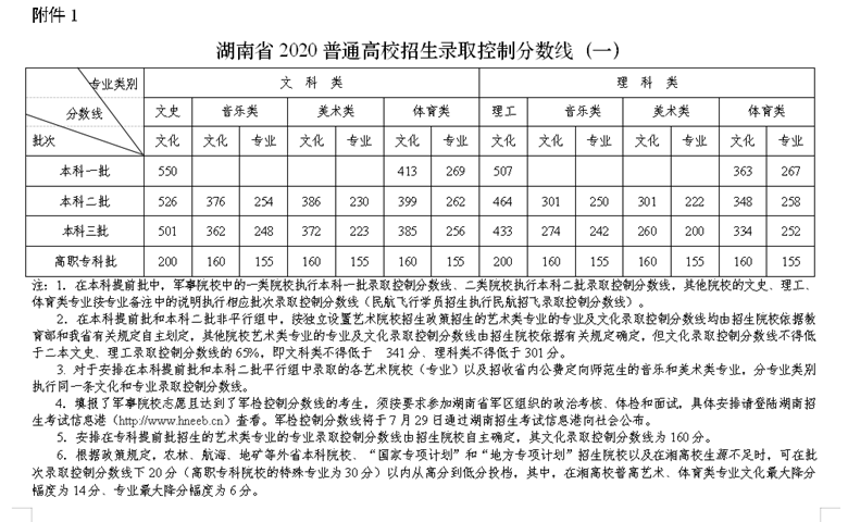 | 湖南公布2020年普通高校招生錄取控制分數線 |