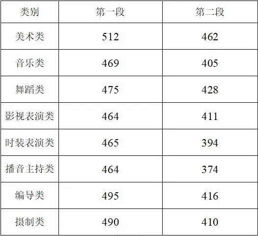 注:(1)藝術類第一批中,教育部批準的可自主劃線的獨立設置本科藝術院校和清華大學等高校的藝術類本科專業,由學校自主劃定文化分數線;其他高校藝術類本科專業文化分數線須不低于 372分。(2)如遇部分類別第一段錄取后即已完成全部計劃,則該類別不進行第二段志愿填報。(3)第二段投檔錄取完成后,將根據各類別缺額計劃和生源情況,分別決定是否適當擴大比例征求志愿。