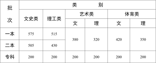 云南省2022年普通高校招生錄取最低控制分數線