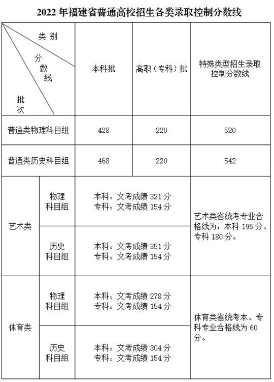| 2022年福建省普通高校招生錄取控制分數(shù)線 |