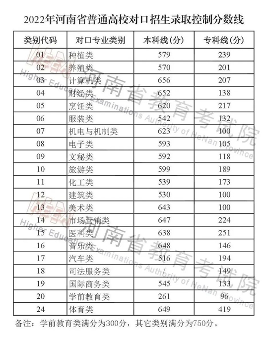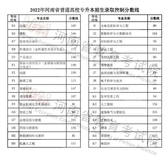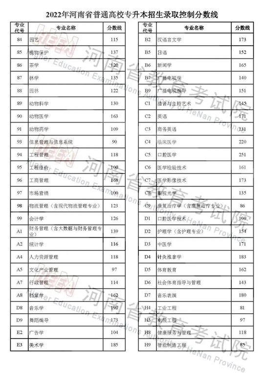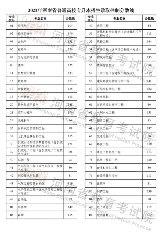 | 2022年河南省普通高校招生錄取控制分?jǐn)?shù)線 |