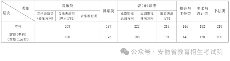 安徽省2024年普通高校招生藝術(shù)類統(tǒng)考批次專業(yè)課錄取控制分數(shù)線
