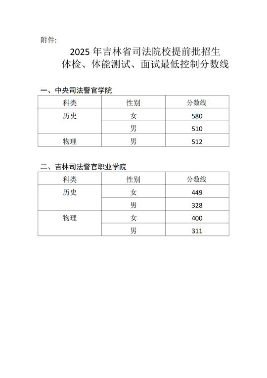 附件:2025年吉林省司法院校提前批招生體檢、體能測試、面試分?jǐn)?shù)線(點(diǎn)擊查看)