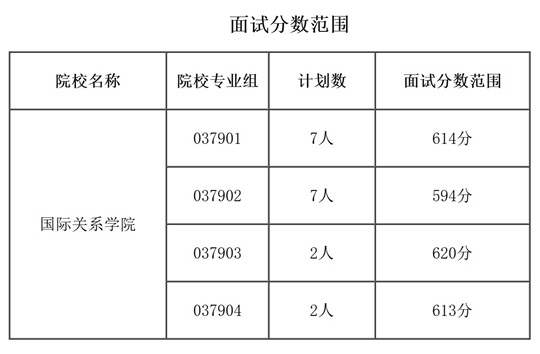 | 國際關(guān)系學(xué)院2025年在津招生面試分?jǐn)?shù)范圍及面試要求 |