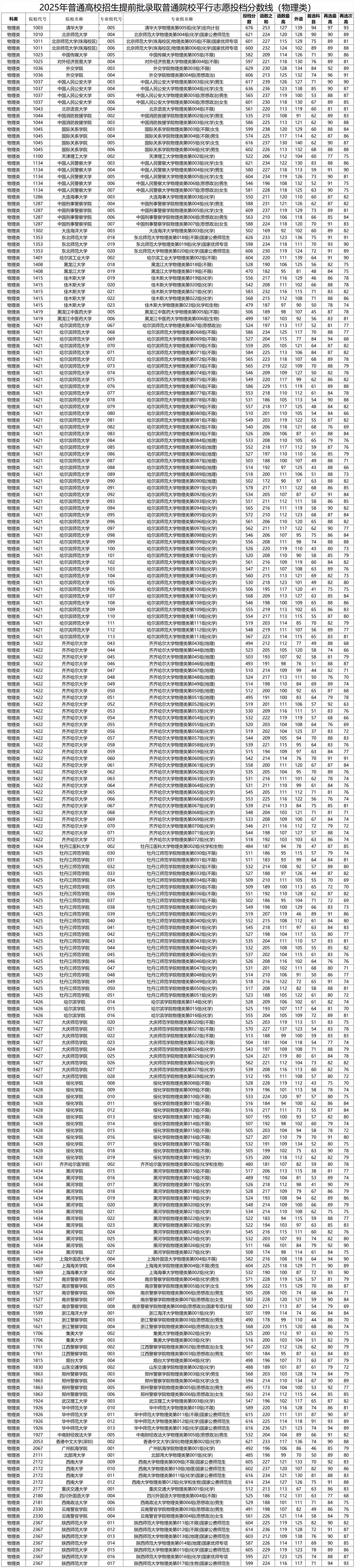 1.2025年普通高校招生提前批錄取普通院校平行志愿投檔分數線(物理類)(點擊查看)