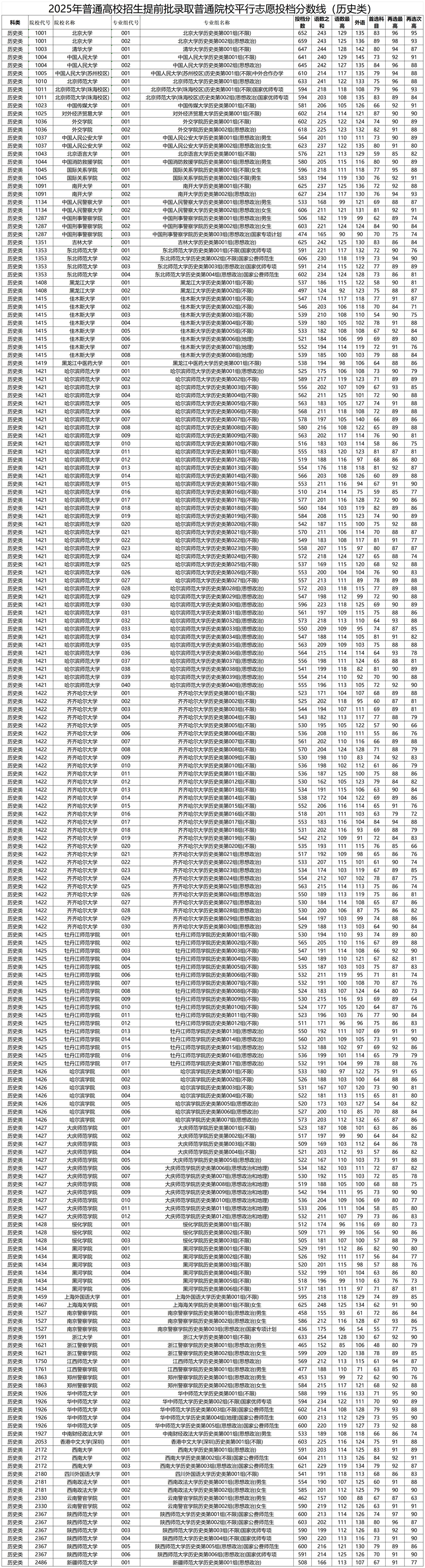 2.2025年普通高校招生提前批錄取普通院校平行志愿投檔分數線(歷史類)(點擊查看)