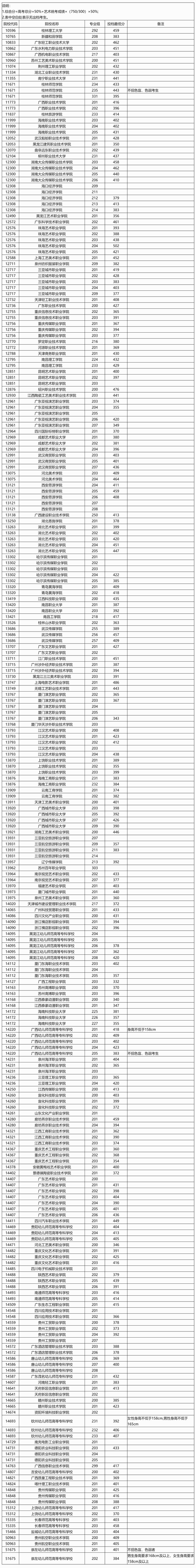 2025年高職高專提前批藝術類院校專業組投檔最低分數線(首選物理科目組)