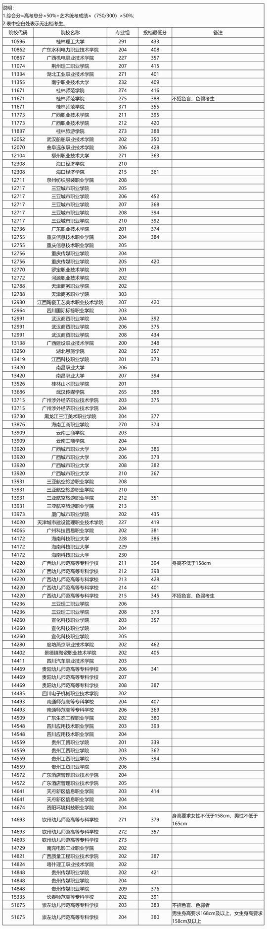 | 廣西:2025年高職高專提前批藝術類院校專業組投檔最低分數線 |