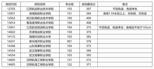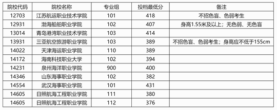 2025年高職高專提前批其他類院校專業組投檔最低分數線(首選物理科目組)