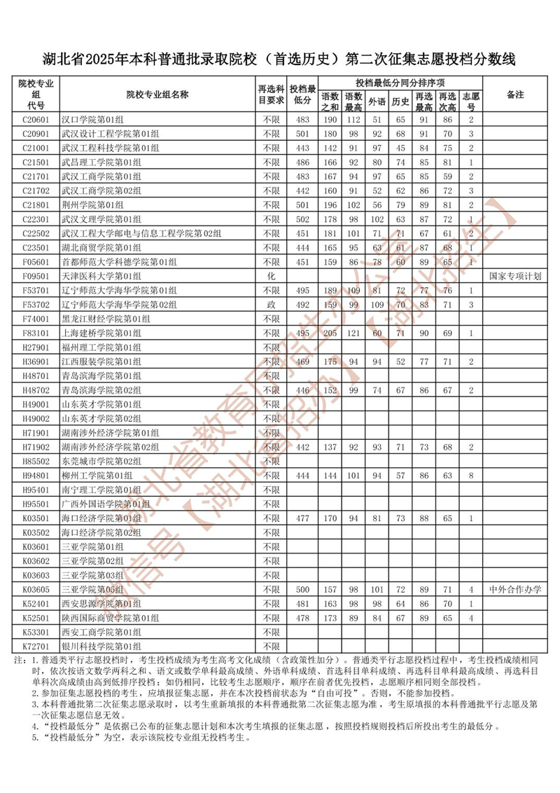 | 湖北省2025年本科普通批錄取院校 (首選歷史)第二次征集志愿投檔分?jǐn)?shù)線 |