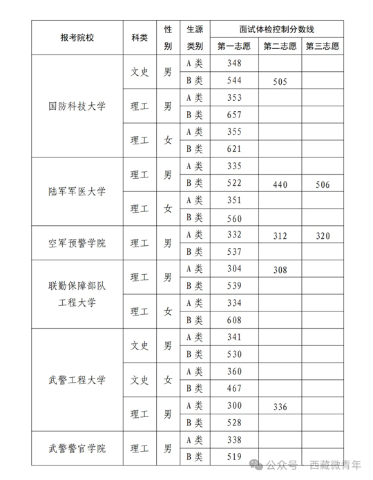 西藏自治區2025年軍隊院校招生面試體檢控制分數線