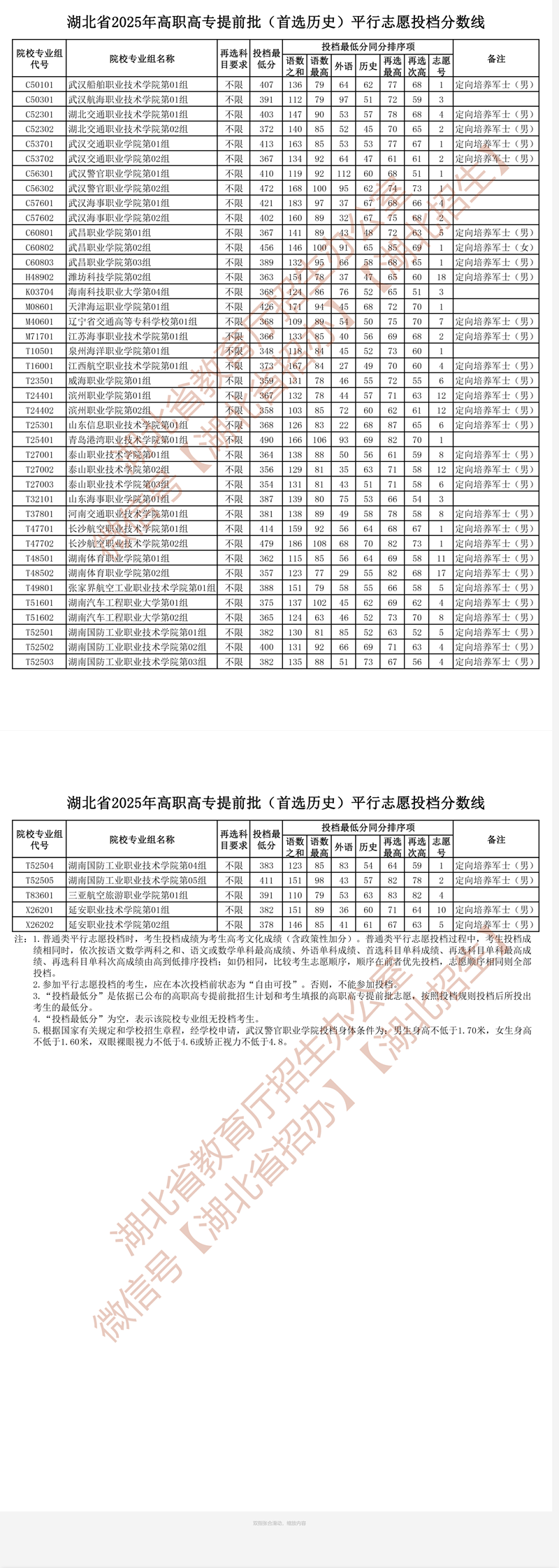 | 湖北省2025年高職高專提前批(首選歷史)平行志愿投檔分數(shù)線 |