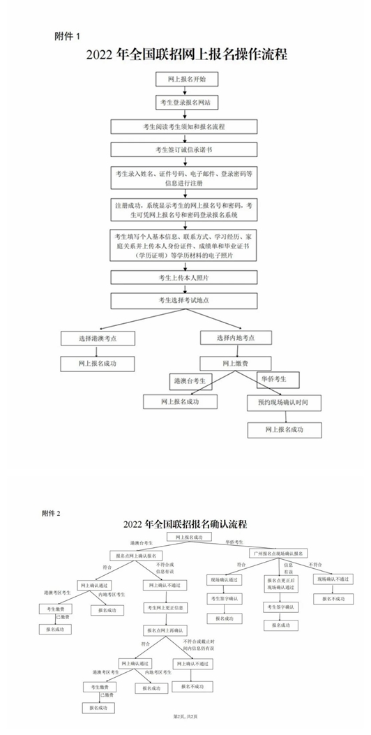 港澳臺考生實行網上報名確認,由相應考區負責機構負責;華僑考生實行現場報名確認,由廣州報名點(暨南大學)負責。