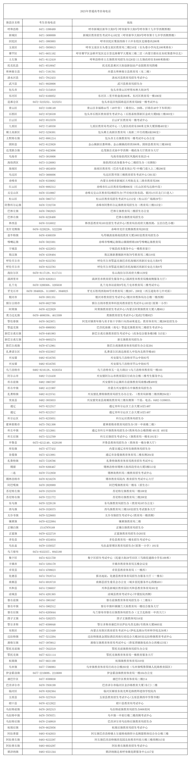 內(nèi)蒙古:2025年普通高考咨詢電話