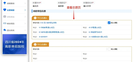 在圖6中點擊左側功能菜單標記①“志愿填報”,進入批次選擇頁。