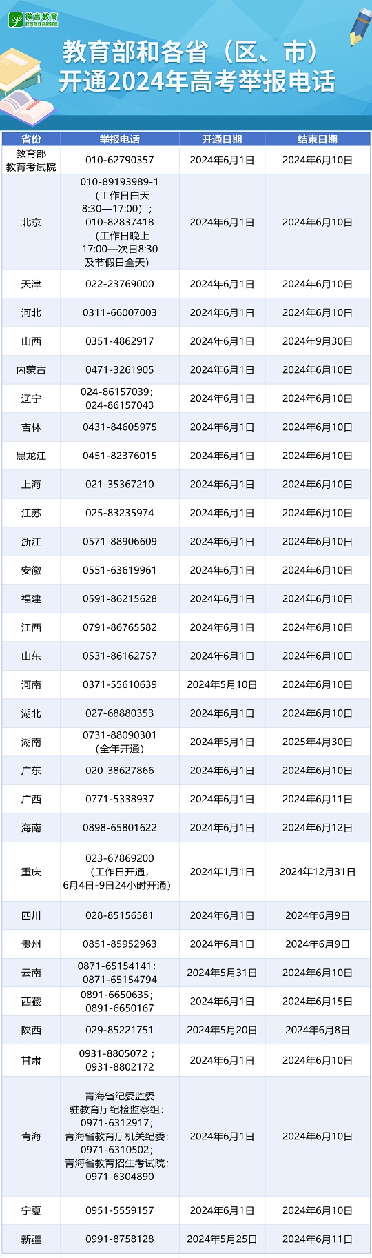| 教育部和各省(區、市)開通2024年高考舉報電話 |