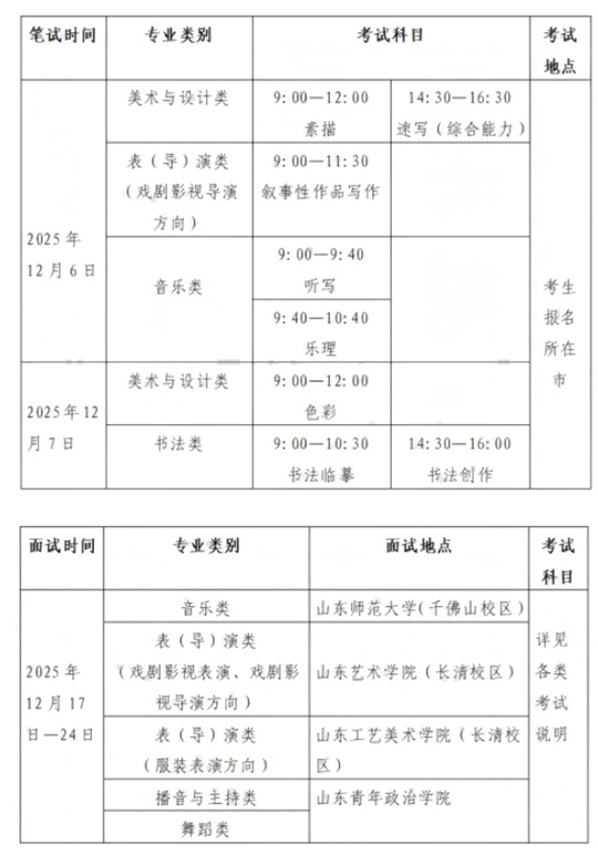 | 山東省2026年普通高等學校招生藝術類專業統一考試公告 |