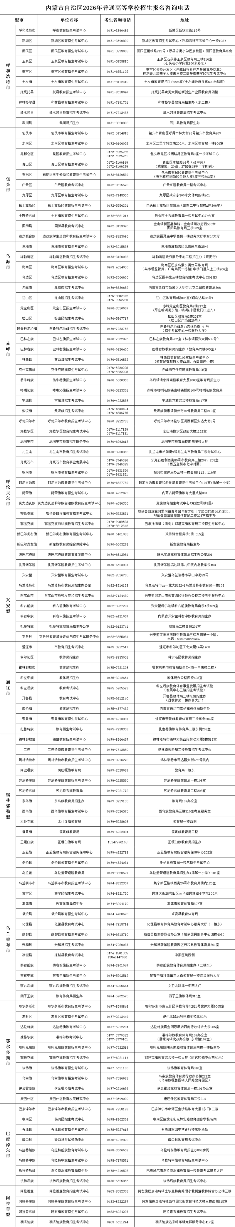 | 內(nèi)蒙古自治區(qū)2026年普通高等學(xué)校招生報名咨詢電話 |