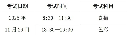 考生進入考場時,除攜帶允許帶入考場物品外,不準攜帶其它任何物品進場。允許帶入考場物品:工具類含黑色鉛筆、炭筆、炭條、鋼筆、簽字筆、色彩畫筆;顏料類含水彩、水粉、丙烯顏料;輔助用具類含4開畫板、畫架、透明文具袋(盒)、削筆刀、非電動橡皮、紙膠帶、水桶(盒)、調(diào)色板(紙)、非插電式吹風(fēng)機、擦布(紙)、吸水布。禁止帶入考場物品:與考試內(nèi)容相關(guān)的印刷品及其他紙質(zhì)材料;手機、智能手表(手環(huán))、耳機、智能眼鏡等帶有通訊功能的工具;具有拍照、錄音錄像功能的設(shè)備。考生不得使用色卡、定畫液、尺子、各種繪畫輔助模板等考試輔助材料。