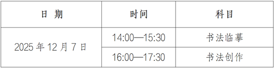3.開考15分鐘后,考生不得進入考點參加相應科目考試。書法臨摹考試結束前15分鐘內方可交卷,交卷后不允許出場,不得接觸手機等違規物品。書法創作考試結束前30分鐘內方可交卷出場,交卷出場后不得再進場續考,也不準在考場附近逗留或交談。