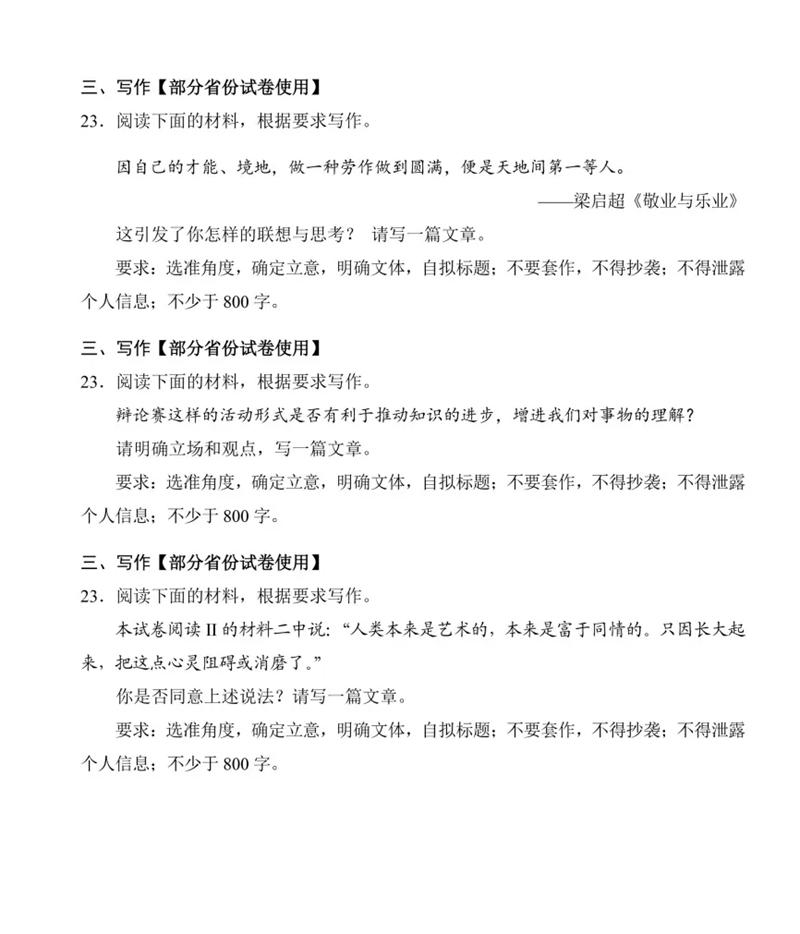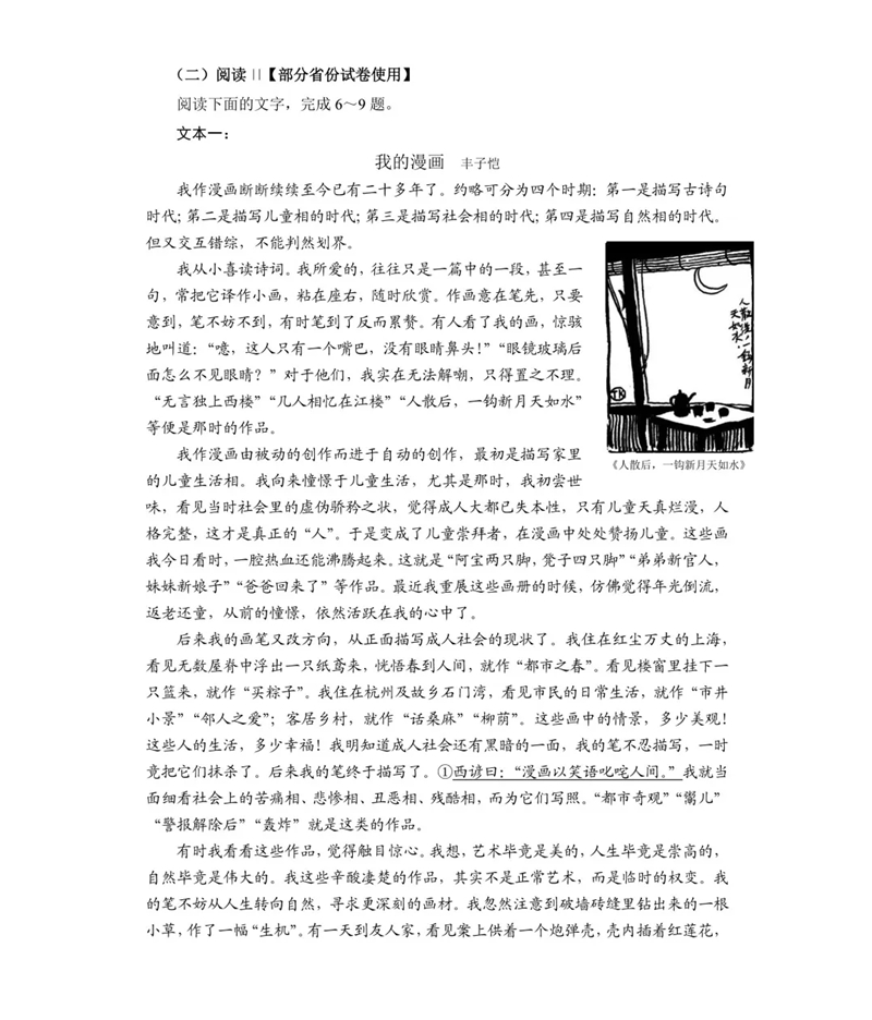 編者按:2025年,山西、河南、陜西、內蒙古、四川、云南、寧夏、青海等第五批高考綜合改革省、自治區將實現首考落地,為實現平穩過渡,相關省份組織了適應性演練。語文科適應性測試題由教育部教育考試院依據高校人才選拔要求和《普通高中語文課程標準(2017年版2020年修訂)》命制,可供依據《普通高中語文課程標準(2017年版2020年修訂)》教學、使用高考全國卷的省(自治區、直轄市)參考借鑒。