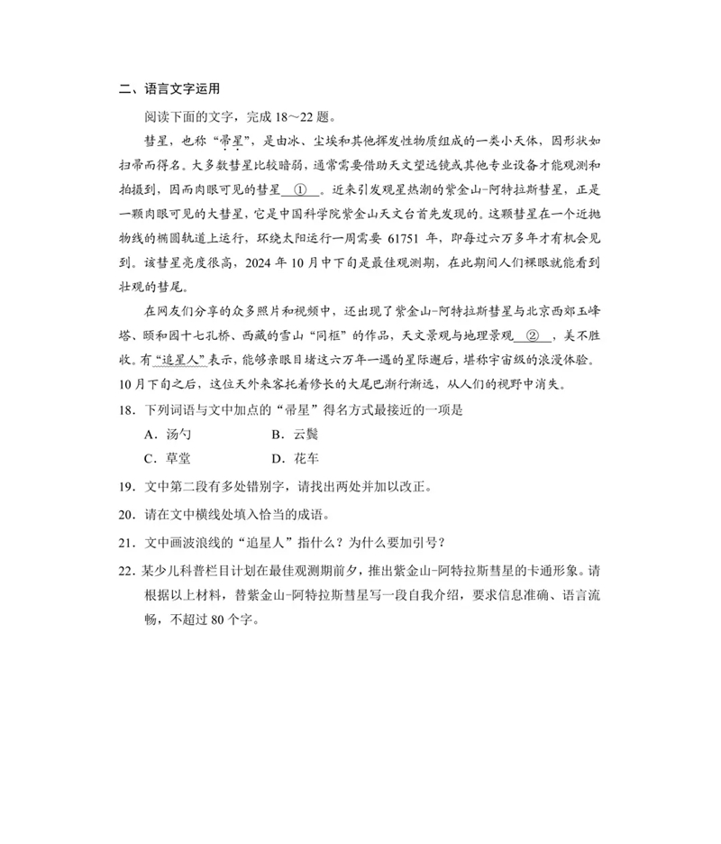 語文語言文字運用試題