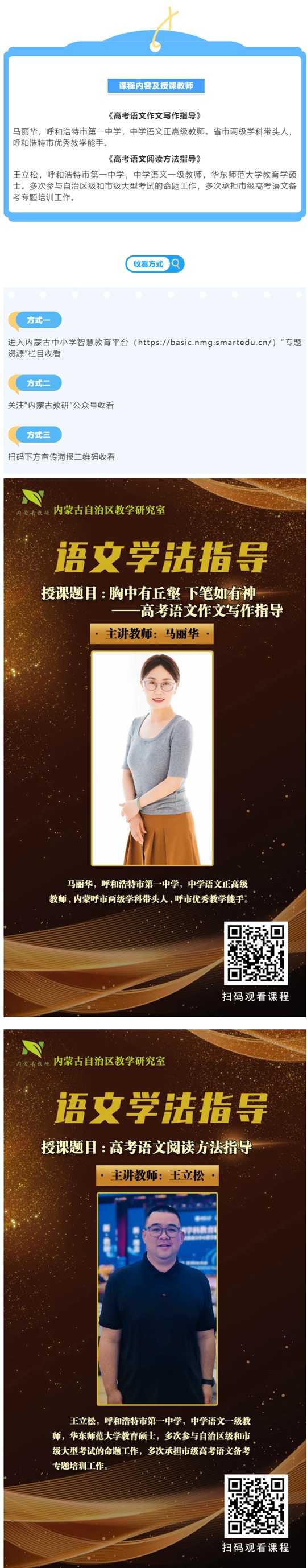 | @高三學(xué)生 內(nèi)蒙古各學(xué)科學(xué)法指導(dǎo)課程和生涯規(guī)劃課程上線︱本期來看語文學(xué)法指導(dǎo)課程 |