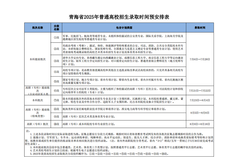 | 青海省2025年普通高校招生錄取時間預安排 |
