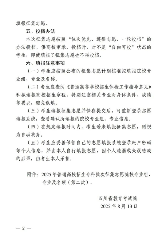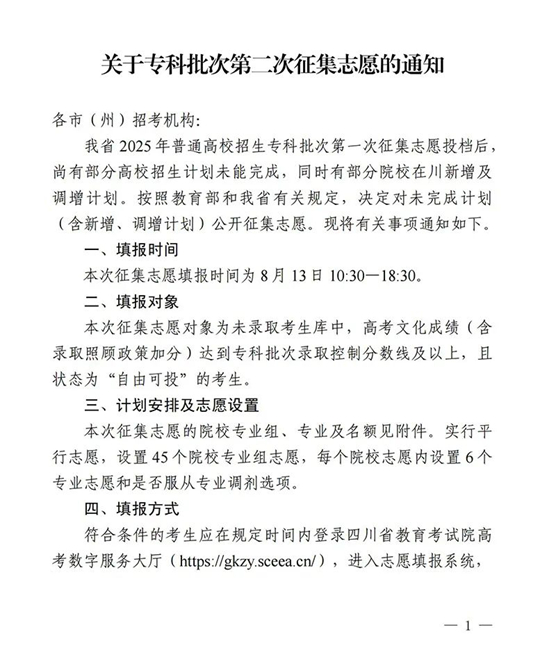 四川:關(guān)于專科批次第二次征集志愿的通知