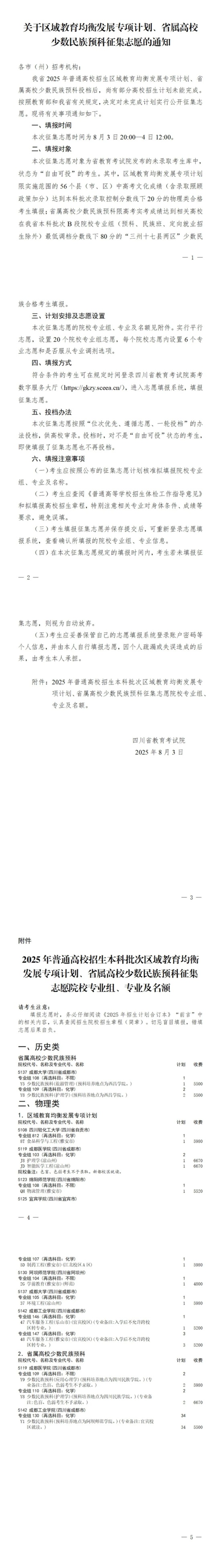 四川省關于2025年區域教育均衡發展專項計劃、省屬高校少數民族預科征集志愿的通知