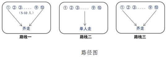 2.自備服裝須大方得體,女生須穿高跟鞋(不得帶水臺),男生須赤足。每人按照規(guī)定的3種展示路徑進(jìn)行臺步展示,時(shí)長不超過3分鐘。展示路徑見下圖: