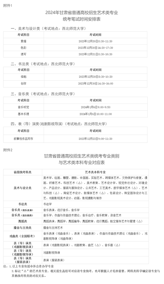 1.2024年甘肅省普通高校招生藝術類專業統考筆試時間安排表