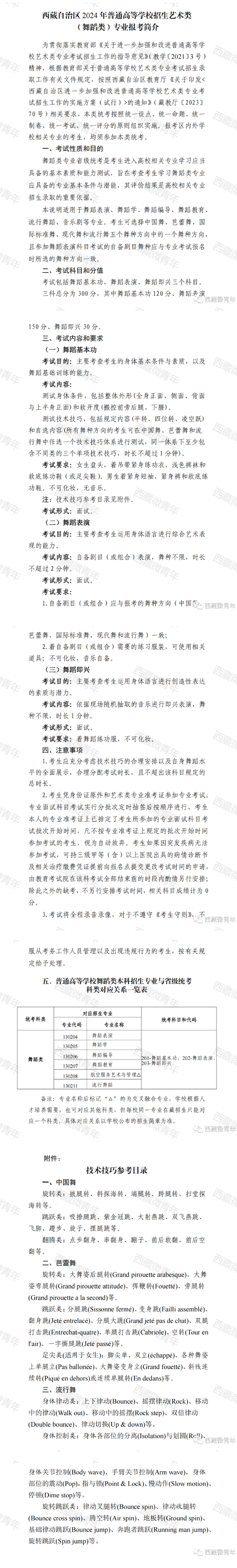 西藏自治區2024年普通高等學校招生藝術類(舞蹈類)專業報考簡介