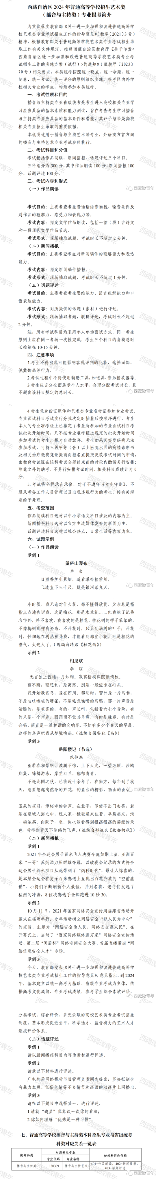 | 西藏自治區(qū)2024年普通高等學(xué)校招生藝術(shù)類(播音與主持類)專業(yè)報(bào)考簡介 |