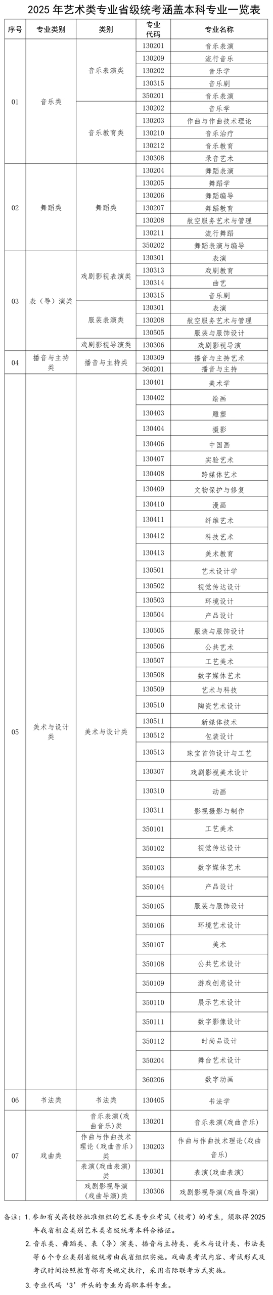 附件:1.2025年藝術類專業省級統考涵蓋本科專業一覽表