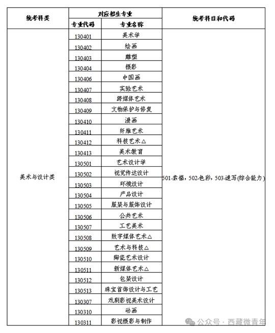 | 西藏自治區2025年普通高等學校招生藝術類(美術與設計類)專業報考簡介 |