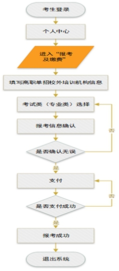 5.考生可選擇微信或支付寶,掃描二維碼進行繳費。繳費成功后,報考狀態會顯示“報考成功”,考生可點擊“完成報考”按鈕返回個人中心,再次查看報考信息,核查無誤后可點擊頁面右上方的“退出系統”安全退出系統。具體報考流程如下: