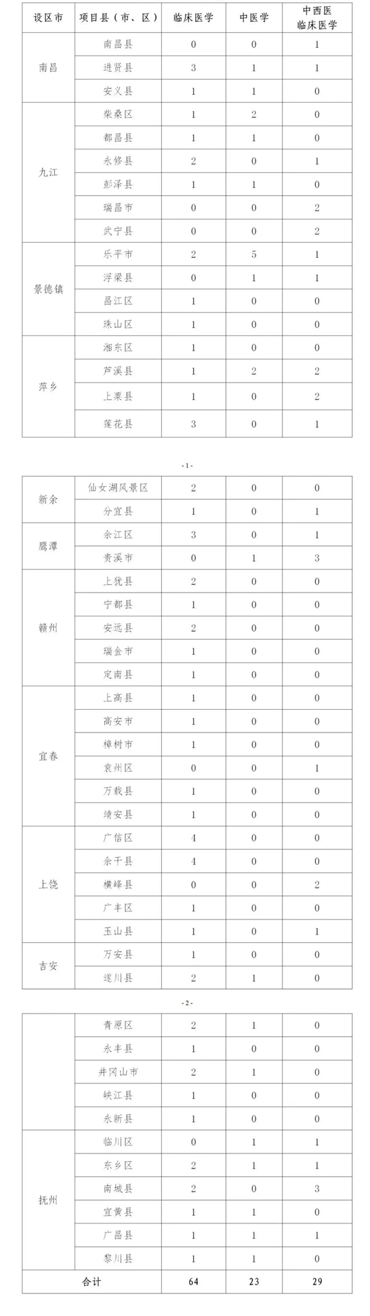 附件:江西省2025年農村訂單定向醫學生需求計劃匯總表