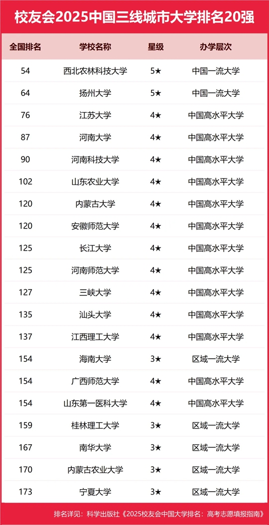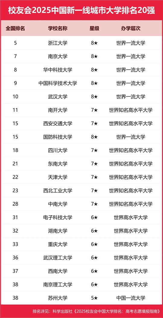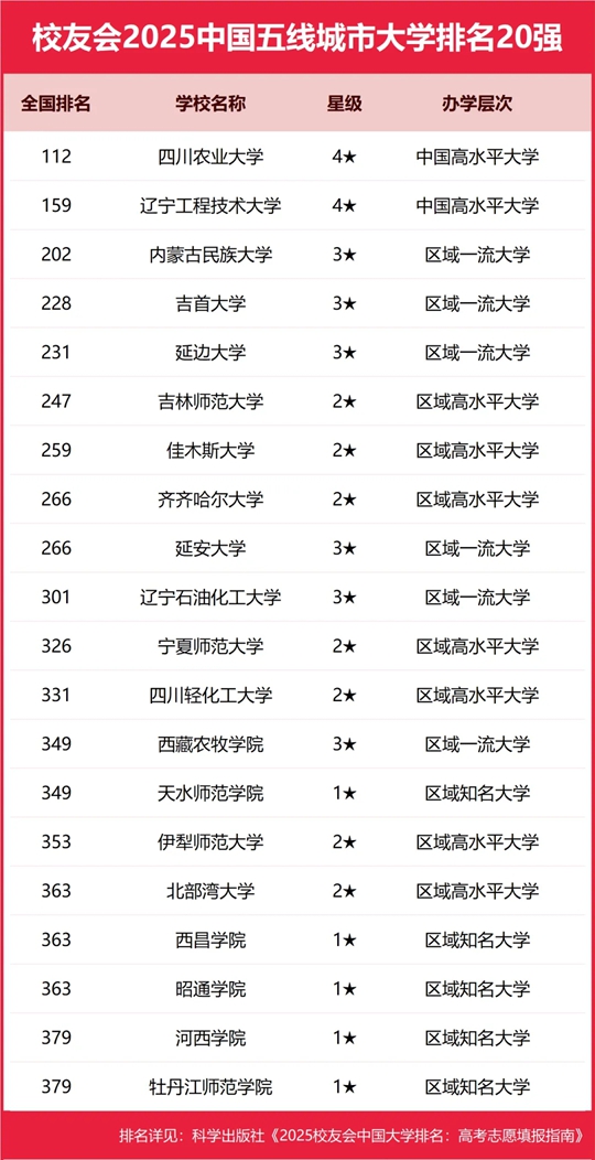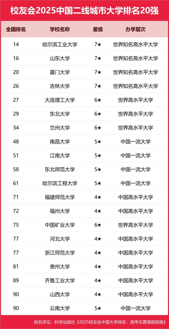 哪些高校是2025年中國(guó)一線、新一線、二線、三線、四線和五線城市辦學(xué)實(shí)力最強(qiáng)的大學(xué)?
