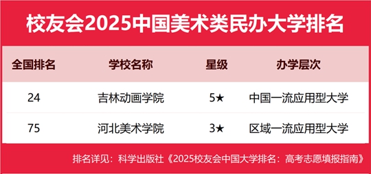 吉林動(dòng)畫學(xué)院位列2025中國美術(shù)類民辦大學(xué)排名榜首,河北美術(shù)學(xué)院第二